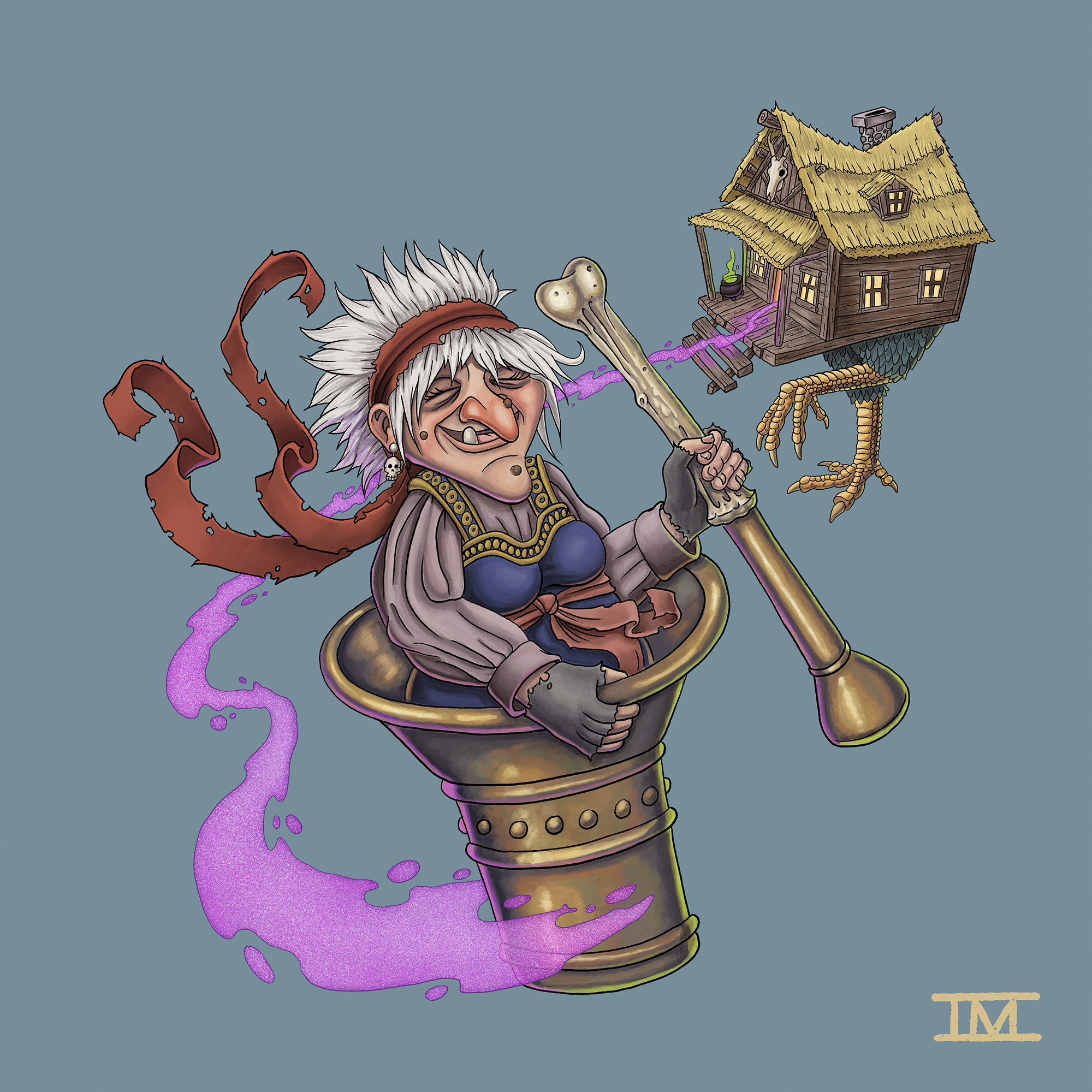 I love storytelling and the rich narratives that resonate with cultures across the globe. This one is about Baba Yaga, she’s a supernatural being from Slavic folklore who flies around in a mortar wielding a pestle. Malevolent to some benevolent to others, but she almost always has her own agenda.